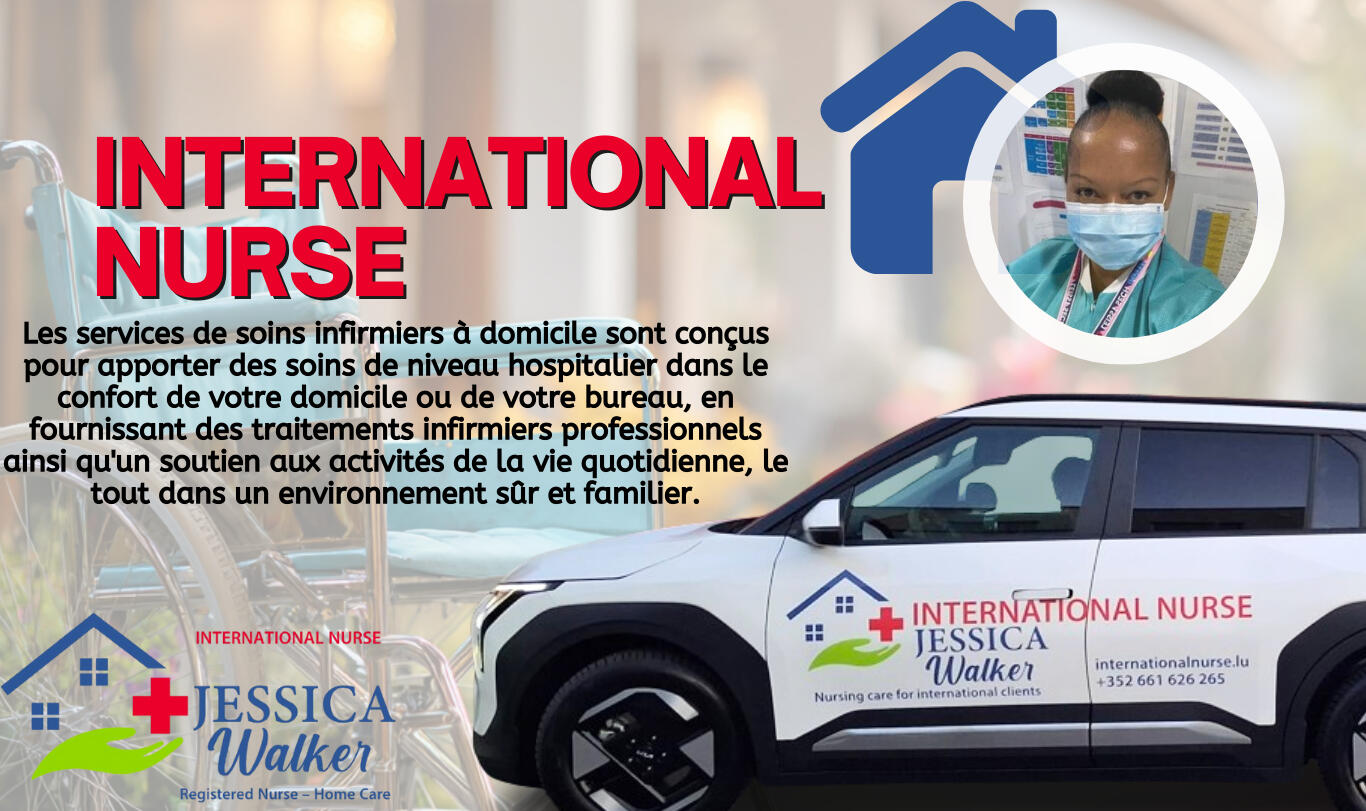 Bonjour, je m'appelle Jessica Walker, infirmière diplômée d'État, anglophone et parlant couramment le français.Forte de plus de 15 ans d'expérience professionnelle en soins infirmiers en milieu hospitalier, communautaire et à domicile, je m'engage à fournir des services infirmiers personnalisés et de haute qualité aux clients de la ville de Luxembourg et de ses environs.