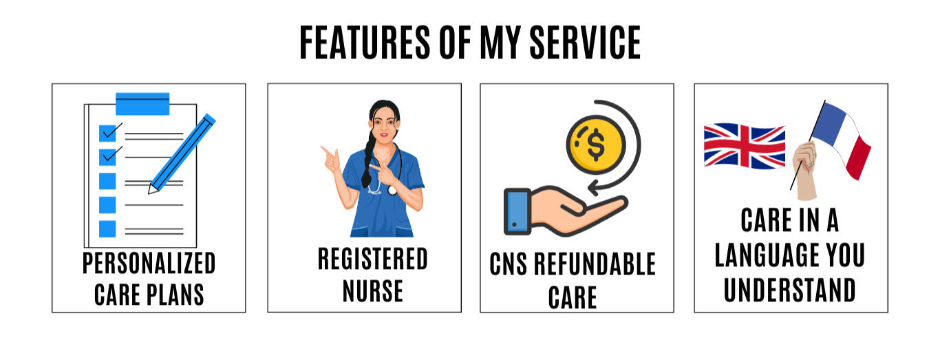 | SERVICES INFIRMIERS PAYÉS PAR L'CNS (SUR ORDONNANCE MÉDICALE) | 💳 SERVICES PRIVÉS (À PAIEMENT AUTORISÉ UNIQUEMENT) |